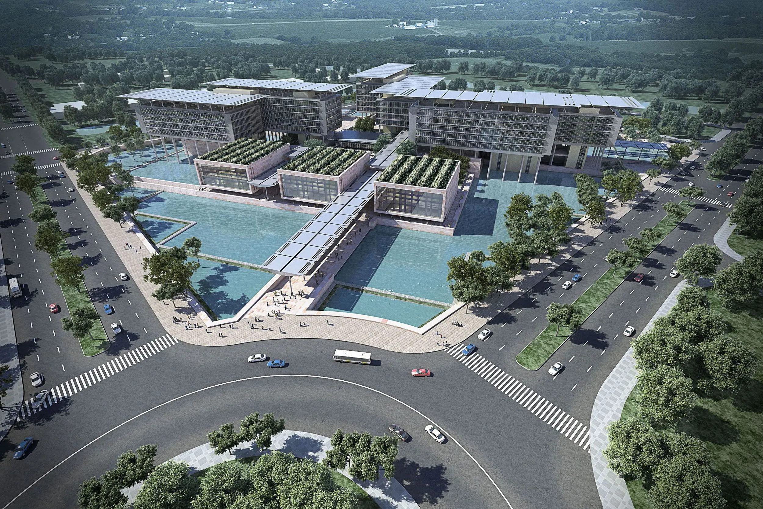 The new urban expansion area south-east of the central city creates an efficient new complex of offices and more accessible public services to enhance the government’s programmes. The structure is a response to the city’s more delicate scale, and representation of new directions in technology the country was committed to.